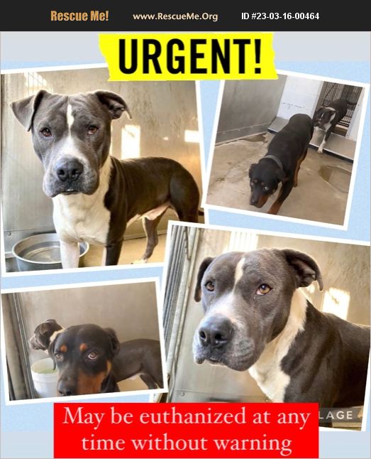 URGENT FOSTER/ADOPTER NEEDED! Video included. This 2 year old Pittie Paulie A551613 is SUPER URGENT and on the euth list at SBC! He is already past his deadline and may be euthanized at any time without warning. That would be heartbreaking! Paulie is great with other dogs as he is currently kenneled with one. (Sadly the Rottweiler pictured was euthanized). Paulie is already neutered. I want to save him! Would you be interested in opening your home and your heart to this boy? Please contact me immediately if you are. Time is of the essence!