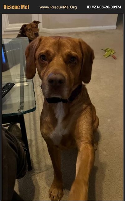 This Hound-mix boy is great with adults... He's a little reticent at first with new dogs, then warms within 10 minutes and likes to play. He enjoys the thrill of chasing squirrels, lizards, and such, so he would thrive in a large back yard or property. He did well with an 8 yr-old, but not a toddler, so NO YOUNG CHILDREN; older, considerate children only. Quirk: Does not like his hind leg petted while sleeping. Fenced yard required;VET'S REFERENCE REQUIRED.