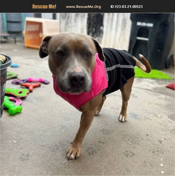 ~Sunshine ~3-4 years ~57 lbs. ~Pit bull ~Kern Shelter (?) She appears slightly fearful and hesitant towards dogs her size or larger. In my experience, when she was around larger dogs she did not growl at them but definitely barked as if to protect her space (while also wagging her tail). It is my belief that if she spent supervised time with a particular dog that was her size or larger that eventually she would get along with them. ~I do not believe Sunshine would be good with cats because she is extremely interested in squirrels. But I have not tested her with cats. ~Sunshine did well with children aged 2, 10, and 14. ~Completely housebroken and uses a doggie door. ~Sunshine pulls on leash (especially at first) but responds well with correction. ~Crate trained and is very comfortable in crate. ~Sunshine is social and very much enjoys people. She is playful and silly but calm when inside. ~Normal shedding. ~Normal barking (only when she hears an unusual noise or when my other dog barks but definitely not excessively). ~Sunshine is great in car. She is quiet and rides well in crate. ~No food guarding. She does eat rather quickly so I purchased a slow feeding bowl for her. ~No known medical issues. ~Sunshine would do well in a home with a family, a single person, or an older person. She is very calm inside a home. I believe it would be advantageous for Sunshine to have another dog in the home. It would be beneficial for Sunshine to have a yard where she could run because she really enjoys that. At the very least she would need some physical activity because she is young. I have enjoyed fostering Sunshine. She is a joyful dog and whomever adopts her will be very lucky! Just a few notes�'�|.it was obvious to me that she had never spent time in a home. She was extremely hesitant to come in the house for many weeks. She also did not venture anywhere but the living room and kitchen because she was terrified to go anywhere else in the house. She has now become extremely comfortable being in a home. She is very loving and lovable, once she gets to know you, and she loves to lay next to you with her head in your lap. She loves soft squeaky toys. She has learned the sit command and is very treat motivated so I'm positive she could be very easily trained in other commands as well. She also did great at the groomers-they all loved her there! If interested in adopting kindly fill out the adoption application found here www.ozzieandfriendsrescue.org/adoptions