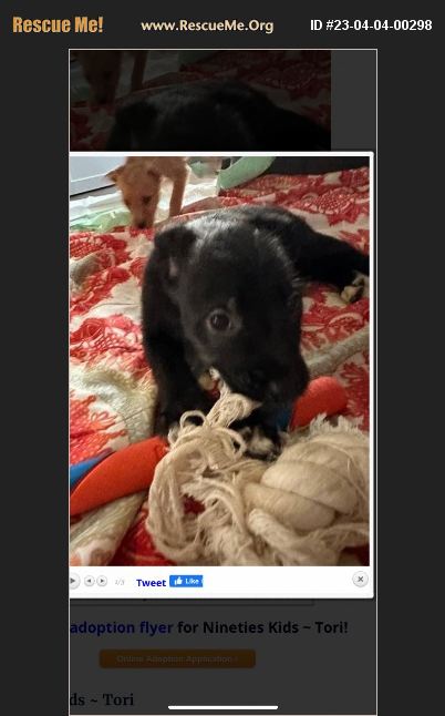 Tori is an absolute sweetheart. If she is with her people and has a couple of toys, she is happy. Our young kids pick her up constantly and she never flinches- she's very go-with-the-flow. She loves to chew bones and LOVES to eat her kibbles. The first night she struggled with crate training as she didn't want to be away from people but after only 4 days she had it down! She is incredibly smart. She loves playing with our 100-pound golden retriever and follows him everywhere. She goes potty every time when taken outside but her loose poop issues have made potty training a bit difficult. I think once it's sorted out she will nail it! She doesn't care for the pee pads so would benefit from someone with a yard that is willing to take her out often until she locks down potty training. Tori gives sweet soft kisses and is so cuddly- she will let you hold her as long as you wish. She hasn't been around cats but I'm fairly sure she'd be just fine. She did meet a boxer in our neighborhood and wasn't a fan of him but he wasn't very friendly. Anyone would be so lucky to have Tori become part of their family.