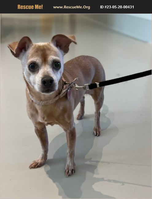 Meet Annie! Annie is a little senior, 18lb Chihuahua/Min Pin/Mix, with the sweetest face that is looking for a home that does not have young children or cats. She is shy at first and may take a little while to warm up, but once she does she loves to hop in your lap and give kisses, all while wagging her tail and dancing around! Annie likes to protect her things, being her person/owner or her toys. Annie is ready for her special, patient loving home.