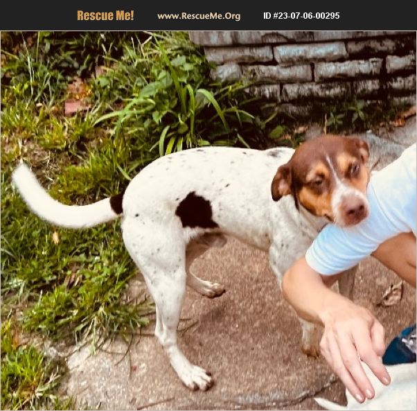 Skip is a very sweet-tempered dog who only wants affection. The picture shows him in his usual plea for attention, nudging against the arm of someone petting another dog as if to say, 'hey- what about me?' He is part English pointer, part dachshund and part mutt, around 2 years old. Coloring is white with tan spots and speckles. He really is the sweetest of his litter, and just wants to be loved. He would be great with children. The owners have too many dogs to give each one the proper care and attention they need, and charge no fee for adoption- just love for your new mutt.