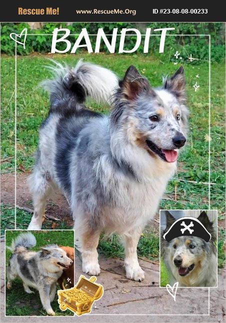 Bandit, Heart-Stealer! Yo-ho Hearties! Our blue and brown bright eyed plushy tailed blue merle Bandit boy is going to plunder your heart! The approximately 5 year old, 45 poundish Aussie mix has a happy temperamemt and typical herder energy. Foster Mom calls him the 'almost perfect Aussie'. Are you seeking a great pal, matey? Bandit has handsome manners, a calm temperament and just all around hail and well met good vibes. The bubbly buccaneer gets along well with kiddos (was raised with them) and pooches of all sizes. In his foster home are senior pups, Chihuahuas, fellow Aussie types- even puppies (he sweetly loves them). He's rather indifferent to felines. Bandit does well on leash, doesn't jump up and is good with his crate. At times, the quirky canine will enter his crate and shut the door behind him. In his previous life Bandit received professional 'good dog' training. So, why is this scallywagger with ASA? Well, as all herding dog afficiandos know-Aussies are smart and social. They need to interact and engage-or, they'll find something to do themselves. Aargh! It is against the Paw-vateer Code to leave our poochmates to concoct quests of their own. Bandit was left alone in his fenced yard for too-long periods. Monotonous. A bit lonely. So...our little wayfarer decided to create an adventure. First step, taking himself up and over-he scaled their chainlink fence. Blimey, Captain Bandit! Avast! In his Foster home, Bandit is not left in the backyard to do as he will. Temp Mom is Aussie savvy and engages the loving lad. Later, he will lay contendly at her feet. Bandit's Forevers? He's simply seeking Family that makes their dog a part of their life and lifestyle. Folks that don't leave their dog outside alone. Bandit will be an almost perfect pal for just about anyone, including dog smart kiddos 5 and older. Another laidback canine or two would be a bonus. Felines are fine. A yard with a privacy fence or wood fence is looked for, but may not be necessary for an experienced and involved who manages and monitors their brood. It's going to be 'fair winds and following seas' in our fella's Forever. The main thing Bandit wants is Someone who understands Aussies and is certain they have the time and temperament for an 'almost perfect' boy. Multiresidential buildings (such as apartments) are not a good fit for this pup. Our adopters give their new family member time to decompress, grow familiar with the new environment/routine and invest time to train. They're committed to slow monitored introductions with new people, especially children, other animals, and places. Captain Bandit sailed over to add, 'Ahoy! Are you my Forever first mate? Let's live a treasure chest of a life- full of love and fun!' Are you destined to sail the seas of life with Bandit as your pupmate? If so, please fill out an application at the link below to be considered as a possible adopter. (Only COMPLETELY answered applications will be considered.) https://www.emailmeform.com/builder/form/dDNce9yr0ChU0F -Fostered in OK, Rogers County. *Read the bio carefully. Priority is given to the pup's needs in choosing the adopter to ensure a Happy Forever. Transport help available for many dogs to many states depending on dog's best interest. *The breed/mix assigned to this dog is based on appearance and/or traits, not from a DNA test. Adoption Fee: $325