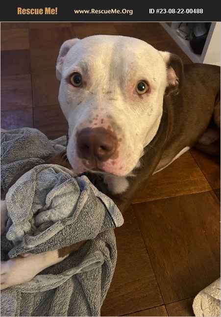 Sweet, gentle, and cuddly Pittie. Good with other animals, people, and kids. Knows some commands. Loves to sleep, play fetch, and chew on a thick blanket. Current on Rabies Vaccine, heart worm medicated, and good on tea/flick for a month from 8/22/23. He is an absolute sweetheart.