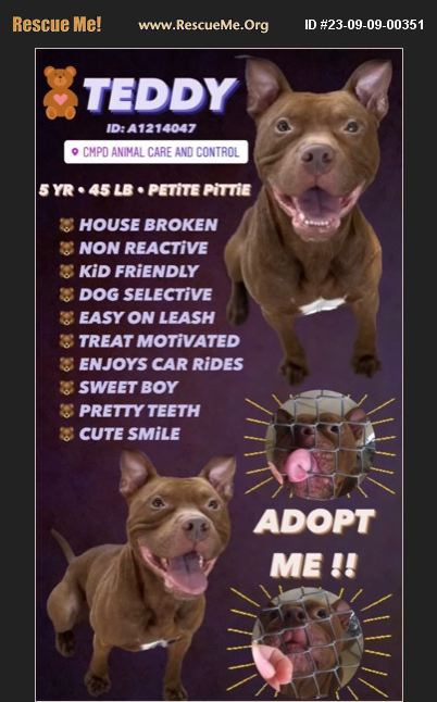This is CHIP but i refer to him as TEDDY bc look at him!! This sweet boy is having a really hard time in the shelter environment and desperately needs a foster or adopter to save him. He is showing signs of kennel stress and is deteriorating rapidly, and on the 'to be euthanized' Urgent list 9/11.... we have a few volunteers that may be able to extend his lifeline for a few more days but we all have resident dogs and this dog is very selective (but did well with a female dog) which makes it hard for us to foster long term (slow intros required)...car compatibility unknown but we do have volunteers that can do a cat test asap to see if there is any prey drive instincts.... this was at one point in time someones pet bc he is housebroken & knows sit and probably misses his family (contributing to his kennel stress) so now we have to find him a NEW FAMILY!!!