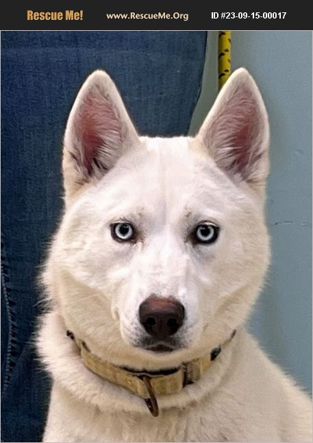 This animal is available to licensed rescue groups only. Please do not enquire unless with a licensed rescue group. Remi is a 3 year old all white Husky who came to us as a found stray earlier this summer. For those who understand how Huskies work, Remi is a 3 year old Husky who doesn't seem to have had much in the way of regular interactions with humans. That being said, she is not aggressive in any way, and really has a wonderful personality - she just acts like a teenager who suddenly has been introduced to rules. Her adopter will need to be willing to put in the time and effort required to provide consistent training as well as mental and physical exercise. She has a history of running when let loose which is somewhat expected from her breed. She absolutely loves playing in her kiddie pool and seems to have a soft spot for older kids.