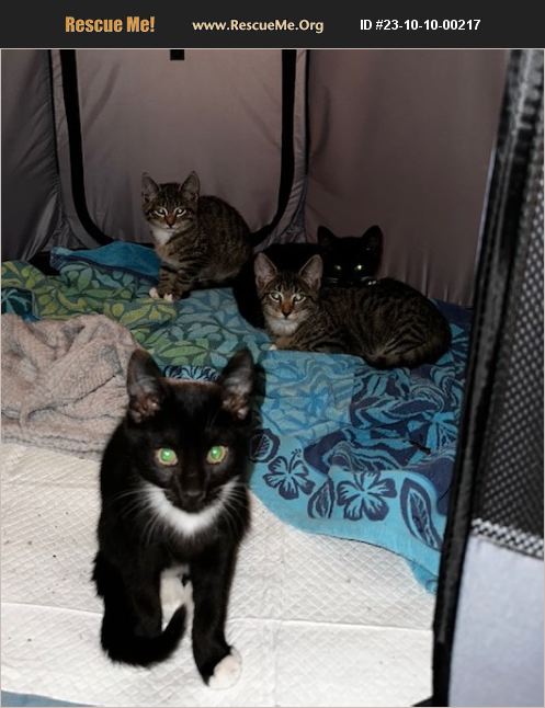 2 boys, 2 girls: the girls are grey tabby and the boys are black/white, 10 weeks old from same litter. Had their first temperament shot. Looking for a forever home as soon as possible. They were treated for URI and recovering. They are very playful and have a great appetite. Litter trained.