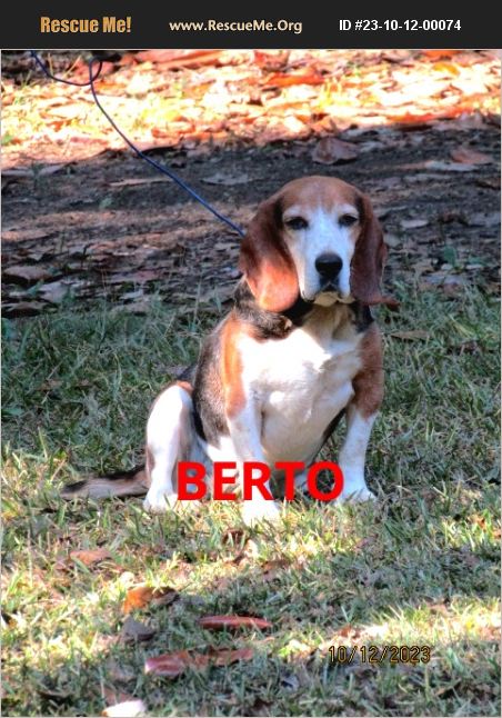 Berto is about 7)8yo, neutered & micro-chipped m, gorgeous 32lb Beagle and is very people/dog-friendly. He is crate-trained for nights enjoys being outside in the daytime in a solid 5'h chain-link fenced property(not a kennel), and then comes inside for 3hr 'family time' hanging with his people and other puppers before going to bed at 9:30pm. He CAN/WILL climb a slanted/leaning tree branch against a fence so regular yard clean-up is necessary for his safety. He's obviously smart and enjoys life and his people and pup-friends.