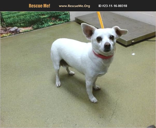 A530098 I am described as a female, white Chihuahua - Smooth Coated mix. The shelter thinks I am about 6 years old. I weigh approximately 15.20 lbs. I have been at the shelter since Nov 16, 2023 and I may be available for adoption on Nov 25, 2023 at 11:39AM. This cute little pooch is also 6 yrs old! Shelter is at over capacity, pls help!