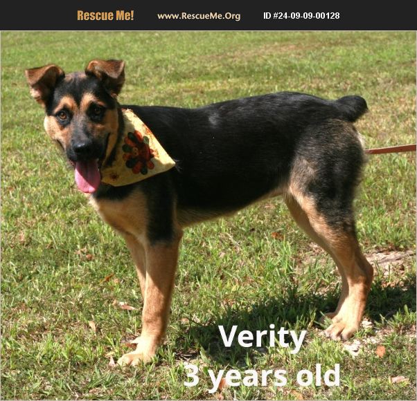 Verity is a 3 year old, 50 lb, German Shepherd Dog/Cattle Dog Mix (we think). She doesn't have a lot of manners yet but is a very quick learner. She is a high energy little lady that loves people. She is crate trained and is HOUSEBROKEN!! She is quickly learning leash manners and basic obedience. She is good with kids, and dogs but does have a high prey drive so you need to be cautious with cats. Verity is spayed, microchipped, vaccinated, dewormed and heartworm negative! Her adoption fee is $250. To apply go to roseacresrescue.org.