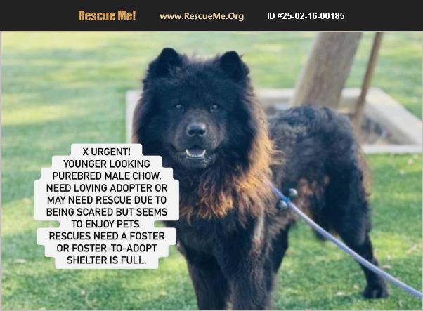 Courtesy Posting: X URGENT, expected to be on euth list soon- LOS ANGELES/CHATSWORTH, CA (SO CAL) - ID #A2181892 - 'L'OURS' aka 'Larry' - LA CITY SHELTER/WEST VALLEY - 53 LB, 2 YR PUREBRED MALE CHOW - NEEDS RESCUE or CHOW SAVVY HOME ASAP (on URGENT LIST 2-17) - GENTLE AND ENJOYING PETS IN VIDEO OCNE HE TRUSTS- RESCUES NEED A FOSTER OR FOSTER-TO-ADOPT to SAVE HOME. Shelter may consider a chow savvy home. SHELTER IS FULL AND HE GOES ON EUTH LIST NEXT. We are in urgent need of finding a chow savvy foster (or foster-to-adopt) and/ or rescue for this handsome younger looking chow boy estimated to be two years young. He may also be considered for adoption by a chow savvy home. Now named L'ours aka Larry by the LA City (West Valley) shelter, he was found as a stray, but his owner never came. The shelter originally told us he needed time to decompress. He was very scared to be leashed early on, although once leashed, he was very gentle and walked okay. And by 2/23, shelter notes state he could be easily leashed, and was very playful in the yard. But due to the initial leash reactivity, with a full shelter, he was unfortunately placed on the urgent list already, so he is expected to be on the euthanasia list very soon. A volunteer sent us nice video showing he enjoys pets once he trusts someone. He accepts pets on both the head and back but it is recommended to go slow. He is however scared when backed into in his kennel, or with barking dogs. Please watch his sweet videos we have accepting keys and taking treats gently. Larry seems like he will continue to thrive outside a scary shelter environment. But we need to find a chow savvy home or foster and rescue asap. Due to his urgency, please contact Robin or Southern California Chow Chow Rescue Network with interest to foster or help at: [email protected] If you can rescue, or to possibly adopt, please also contact the shelter directly at (888) 452-7381. We will post updates, additional pictures and videos on Facebook at: https://www.facebook.com/783968124/posts/10166696185893125/?mibextid=wwXIfr Note: to view contents of links, you will need to copy and paste each one separately into your browser.