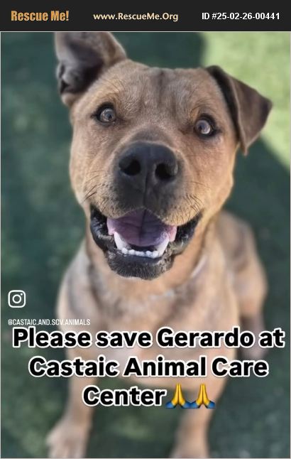 URGENT!! Gerard needs a committed adopter now!! Shelter is FULL!!He is in danger of being euthanized for space!!! Video: https://www.facebook.com/reel/9495184273865893?fs=e&mibextid=wwXIfr&fs=e Gerard #A5674695 is a 3-yr-old, 60 pounds lab/pittie mix. He came to us a stray but, despite whatever he may have been through, he is extremely affectionate and loving toward people. He's a sweetheart with a heart of gold and a very calm demeanor. He gets along with female dogs. Gerard would love a family that will help him continue to learn new things and always give him LOTS of affection!! He already knows some basic commands and takes treats gently. Will benefit from leash training (as he pulls with excitement on the leash) but this boy is ready and eager to please! Please hurry over to save adorable Gerard at Castaic Animal Care Center, 31044 N. Charlie Canyon Road, Castaic, CA 91384 Tel: 661-257-3191 Email: [email protected]