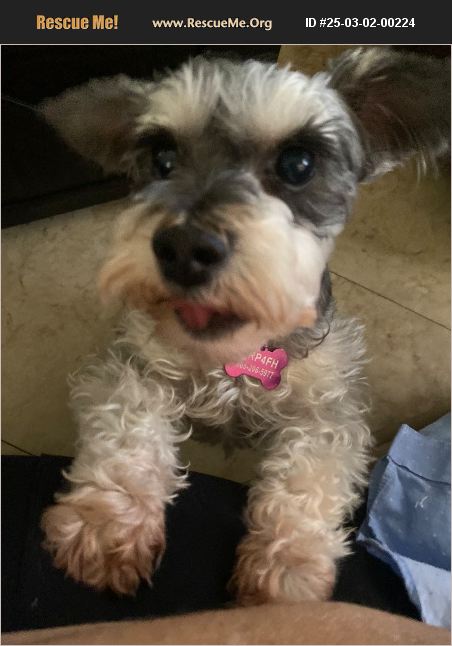 Karl is a 7 year old toy purebred Schnauzer. He came to us from a breeder who highly neglected him, and never took the time to socialize him with other people so he tends to be a bit intense and fearful around people. He doesn't know. He is very sweet with the person that he chooses as his own, but can be very protective of that person and bark a lot at other people. If approached too quickly, and if he feels threatened, he can nip at the person. The best home for Karl would be in a house with a fenced in yard since he is not a fan of walking on a leash. He is crate trained, and fully potty trained, and typically will not have accidents in the house. Karl would need to be adopted locally in Miami Dade or Broward county in Florida as he would need to be fostered before finalizing an adoption to ensure that the home is a good fit for him. If you are interested in Karl, you will need to submit an application through our website www.rescuepaws4furryhearts.org/adoption To be considered as a potential adopter.
