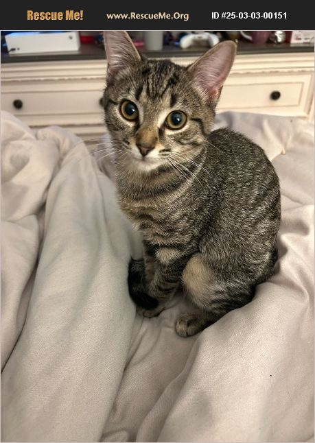 Diamond is a 5 month old kitten and is very sweet. She loves to climb under the covers and snuggle with you. She has 3 other kitty siblings and loves to play with them so she would make a great addition to current cat owners.