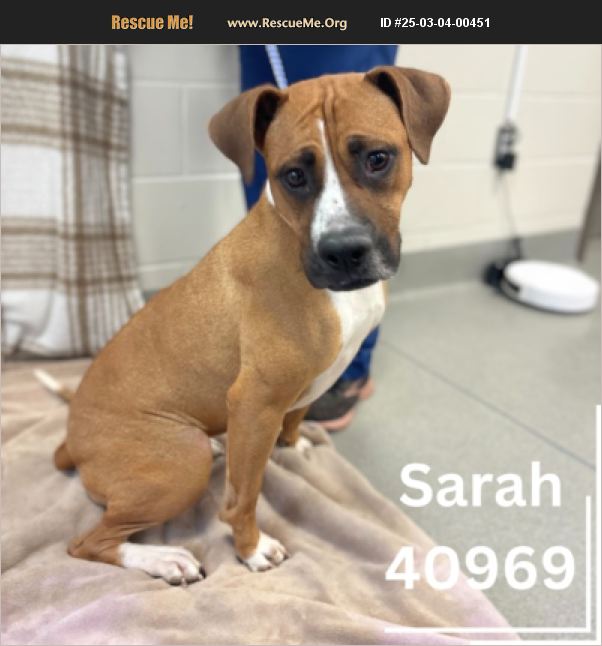 Sarah is looking for her new home! She was brought into this high kill shelter when she was found dumped on the road in Bainbridge, GA. She is a boxer mix who is about 1 year old and weighs 57 lbs. She has been at the shelter since 9/2024. She was dumped pregnant and has given birth in November. All her babies got rescued but she sits waiting for her turn. She is super sweet and loves attention. Can you help get her out before it's too late? This is a high kill shelter and no place for this sweet girl. The shelter has a wonderful Pilots N Paws program and she can be flown anywhere in the state to her new home. Call Deana at Rescue Dogs Dream with questions-813-928-3991 or email [email protected] for more information.