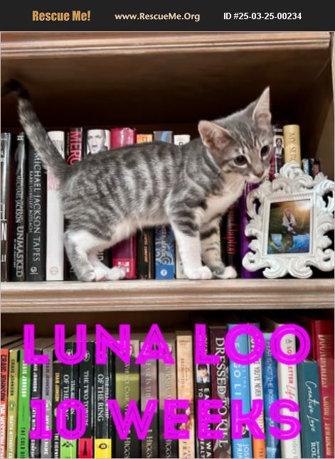 Luna Loo is an absolute sweetheart! She's the perfect little mix of her beautiful parents, who are both Maine Coon/Domestic Cat mixes. With her soft blue-grey eyes and playful spirit, she's a joy to be around. She's so soft & silky to pet. She's full of energy, bouncing around like she's on springs-just like her mama! But after a good play session, she loves nothing more than curling up in your lap for a cozy nap. Her personality is just as wonderful as her mother's, who happens to be the sweetest cat I've ever had. Maine Coons are known for their high energy, big appetites, and loving nature. They thrive on attention and stimulation (a cat wheel is a great way to keep them happy), and once they hit 7 to 9 months, they can become quite the little chatterboxes. If you love a cat that 'talks' to you, you'll adore this breed. For those who welcome a Maine Coon into their hearts, life is never quite the same again-in the best way possible. **IF INTERESTED, TEXT OR E-MAIL WORKS BEST.**