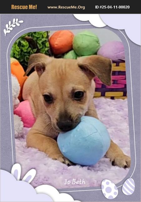 Jo Beth, Chi/MinPin mix, 10 weeks, 5 lbs, will be spayed last week of April. She is one of a litter of 7. Her mama was an owner surrender when she was late term pregnant and HW positive. Mom is around 14/15 lbs, we are told that dad is a Chihuahua. She was born and raised indoors and is potty pad trained and very social. She will be ready to go to her new home the first week of May. She will have 3 puppy shots, been wormed every two weeks, Bordetella, Rabies, Microchip, and be on HW/flea/tick preventatives. We require an application and a vet check for our adoptions. Transport is available to most northern states at the adopters expenses, but we will help to facilitate.