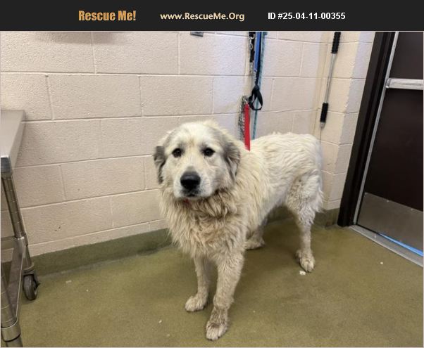 ID#A542237 I am described as a male, white and gray Great Pyrenees mix. The shelter thinks I am about 5 years old. I weigh approximately 120.00 lbs. I have been at the shelter since Apr 11, 2025 and I may be available for adoption on Apr 18, 2025 at 10:00AM.