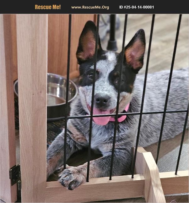 Athena is a 7 month old pure-bred AKC registered Australian Cattle Dog, 'Blue Heeler.' She has beautiful classic Blue Heeler markings. She is high energy and needs a job to do. She requires substantial training. She jumps and nips. She requires an owner with a firm hand. Owners are dealing with personal illness and limited space, and cannot provide the training she requires. She will thrive in the right environment, with love and firmness.