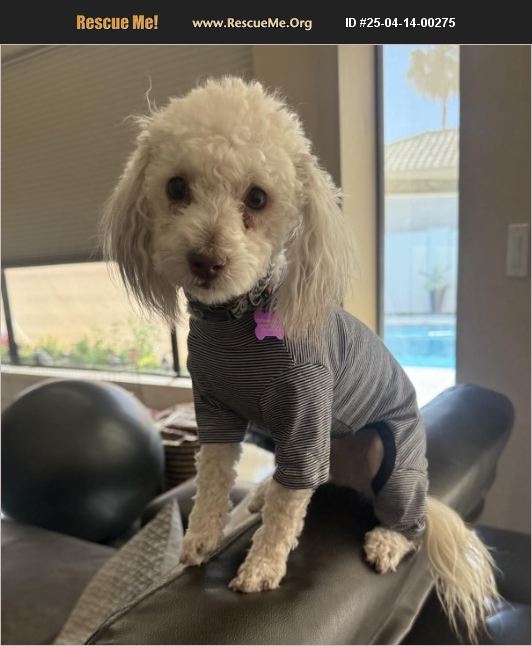 Meet Max - Your Future Snuggle Buddy! Looking for a loyal little shadow to follow you around and shower you with affection? Max might just be your perfect match! Max is a one year old, 5-pound poodle mix. Max is a bit shy and can be a bit defensive and possessive at times, especially when guarding a treat or his favorite human, but he responds well to gentle correction and just needs an experienced, patient adopter who can help him feel safe and secure and continue to gently correct him when he gets an 'attitude'. This little guy adores car rides, toys, and playtime - especially when it involves zoomies in the yard! He's happiest when he's near his people and will quickly find his favorite spot right on your lap. Max is a sweet, snuggly pup with a heart full of love and a nose for adventure. He's crate trained, does well with both men and women, and is great with children and other dogs. While he's still working on being fully housebroken, he reliably uses pee pads and just needs continued guidance as he adjusts. He's still learning basic commands like 'sit' and 'quiet,' and with a little time and training, we're sure he'll pick them up. He is still very much a puppy, so providing him with sturdy chew toys and keeping him active would help with his puppy energy and curtail any mischievous puppy activities! Max would thrive in a loving home with someone who understands the needs of a slightly timid pup who is still learning the ropes and would benefit greatly from another confident, playful dog in the home to help build his confidence. In return, he promises loyalty, lots of laughs, and more cuddles than you can count. Max is up to date on vaccinations, neutered and microchipped. His adoption fee is $300.00. If you are interested in adding Max to your family, please visit our website at: https://pwrescue.org/ and click on the 'Adoption Application' button at the top of the page to complete an application.