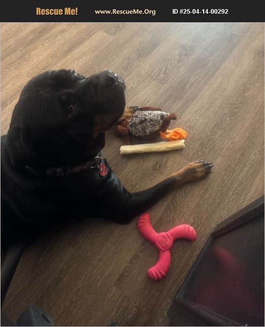Gypsy loves to play, loves attention. She loves her toys, rides in the car, going for walks and loves belly rubs. She is 2 years and 3 mths old. We have her four year old sister too and the two of them are battling for dominance in the house and I can't have one of them get hurt. She needs her forever home. She is a full bred Rottweiler. We do not have papers for her.