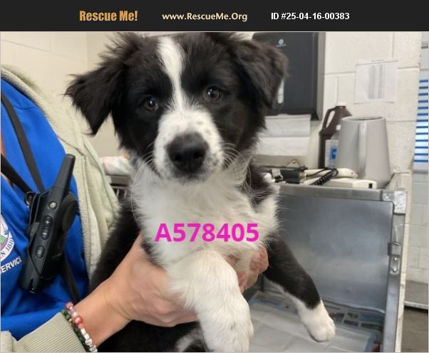 Species: Dog Breed: Border Collie Color: Black and white Gender: Female Age: Approximately 4 months old Description: I arrived at the San Bernardino City Animal Shelter on 04/16/2025 from San Bernardino. Current Location: San Bernardino City Animal Shelter, Kennel: RECEIVING Info: I'm currently on a stray hold, which means my family might be looking for me. If I'm not claimed, I may be available for adoption starting 04/20/2025. Location: San Bernardino City Animal Shelter Website: www.sbcitypets.org Phone Number: (909) 998-4000 Address: 333 Chandler Place San Bernardino, CA 92408
