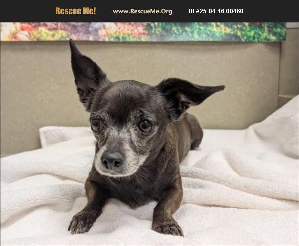 ID#A542115 Shelter staff named me MIMI and I am a female, black Chihuahua - Smooth Coated mix. The shelter thinks I am about 8 years old. I weigh approximately 8.60 lbs. I have been at the shelter since Apr 08, 2025 and I am available for adoption now!