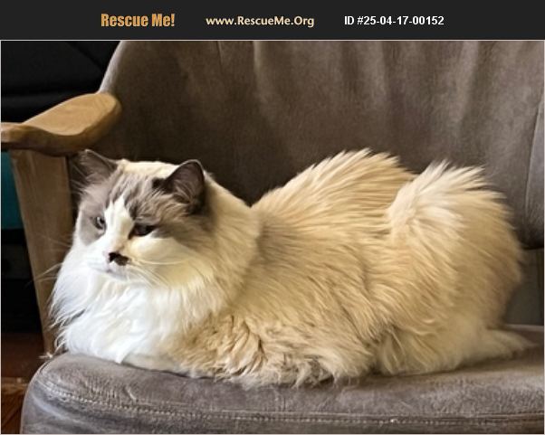 Our little Pumpkin is 15 years old. She came to us from a breeder when she was 12 weeks old. We love her dearly, but we are moving to a retirement home that does not allow pets. Pumpkin has lived with two female cat. She got along fine with one of the cats, but the other cat was bossy, which Pumpkin didn't like. Pumpkin has been exposed to dogs for brief periods and is okay with dogs who were extremely well behaved and don't bark at her. She would be happiest in a quiet household. Pumpkin sleeps a lot and she loves to be brushed. She eats a prescription food from our vet to support her kidneys. The food - and encouraging her to drink lots of water have kept her kidneys in good shape.
