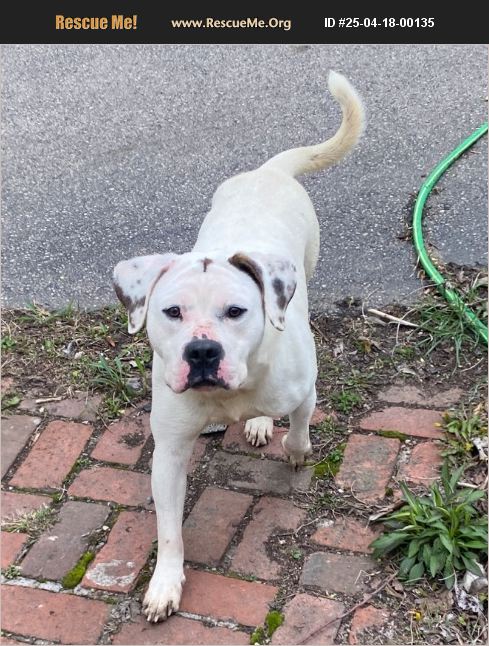 Very sweet boy found in montgomery county on 4/15/25. have been housing and feeding since then but am not able to keep him for much longer and need to find a home soon. all white body with brown/black spots on ears. incredible personality, and has only interact with a female dog but seems possible to have a great demeanor with all dogs.