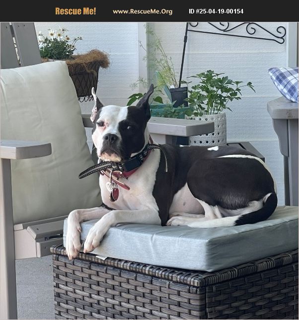 Daisy was rescued in September of 2023 from a cemetery. She was dirty, malnourished, and had some minor skin issues that cleared up once she was fed well and cleaned up. She been very healthy and is a happy fun loving dog. We worked with a private trainer to help with excitement and behavior around our 3 young grandchildren. She is often good but gets so excited we have to keep her leashed otherwise she bolts and runs around the yard knocking over the grandkids ranging 18 months to 4 years. She's also knocked over our elderly parents. We need to find a new home for her where she can use up more of her energy to be able to be calm and listen at other times.