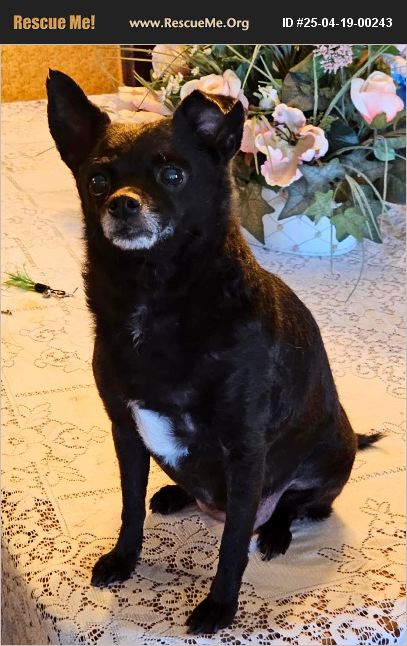 Please fill out an application to start the process to meet Jolie. Meet and greets will be held in RIVERSIDE, CA https://pawsitivetailstoremember.forms-db.com/view.php?id=17980 Jolie is 3 years old, she weighs 12 lbs and she is a short haired Chihuahua with a jet black coat and white whiskers around her mouth and under her chin. Jolie is house broken to a schedule; she is crate trained, loves to be held and is playful and energetic. This little girl survived a hoarding situation with over 40 dogs and 40 cats being rescued, but she's healthy and was well cared for and she was definitely not underfed! Jolie needs to lose about 2 lbs to be at her perfect weight. Discipline and quality food will do the trick! Please open up your heart and home for this precious girl. Jolie gets along great with other small dogs and cats and we are requesting NO NAME CHANGE! Jolie was just seen by our vet and she is current on vaccines, is spayed and microchipped. Will you be Jolie'snew family? She will fit into any type of household, but we insist that there be another small dog in the home as a companion and would prefer someone who is retired or works from home.