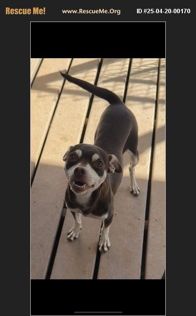 Meadow is a 2 year old beautiful brown and tan chihuahua mix. She weighs about 12-15 lbs. She will be a great companion for any family. She loves other dogs. Craves attention and likes to be by you and sit on your lap. To apply you can go to our website at furverfriendsrescueenid.com