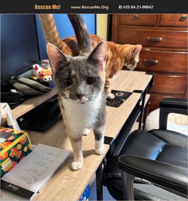 Maeve is bonded with her littermate, Lazlo, and I would prefer them to be adopted together for less stress on them. The two were taken together by my niece and her boyfriend - unfortunately things didn't work out so they've been in my care. They are VERY sweet kitties but I have 3 cats and a dog of my own - the extra 2 cats are causing stress on my cats. Maeve and Lazlo are good with everyone they meet (cats, dogs, people) but can be a little shy at first. Maeve likes to sleep under the covers with me and Lazlo is more of an independent sleeper (who loves his pre-bedtime snuggles). Both are very food motivated and goofy 1 year olds!