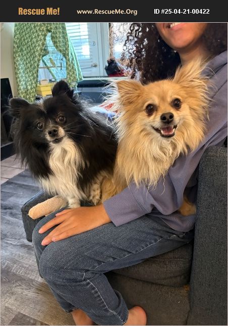 Two purebred 5 year old male Pomeranians who are brothers and bonded. They belonged to our grandmother who passed away, and unfortunately we cannot keep them. The tan Pom (Benery) is mellow but shy and the black Pom (Pup) is more vocal and pretty scared of new people. They do well with other small dogs once they get accustomed. Vaccines are up to date and both dogs are pee pad trained.