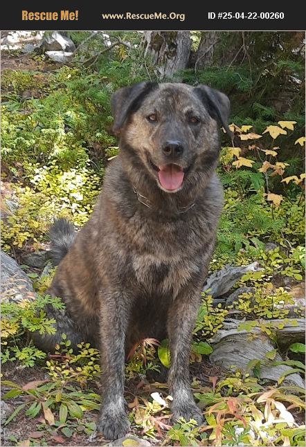Pinot (nickname from my son naming him Pineneedle) is a sweet guy, a great protector and companion best suited for a one on one traveling or indoor living situation or an outdoor living situation. Note the heart on his chest - he has a big heart, loves to hike and will protect you and your property. Low barking; comes with bark collar that I seldom have to use anymore. He's a real winner.