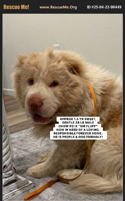 Courtesy Posting: PASADENA, CA (SO CAL)-PASADENA HUMANE SOCIETY- ID #A521010 - APPROX 1.5 YR SWEET, GENTLE 38 LB MALE CHOW PEI X 'SIR FLUFF' - was euth listed at shelter, NOW IN NEED OF A LOVING, RESPONSIBLE FOREVER HOME, HE IS PEOPLE AND DOG FRIENDLY! Please help us find a good and dog savvy home for adorable Sir Fluff! He was originally found as a stray and ended up at the Apple Valley kill shelter where he was listed as a chow pei mix. When he ended up on the euthanasia list, a good samaritan offered to foster him on his final day in hopes of finding a permanent home once he was out of the scary shelter. This Good Samaritan has several dogs of her own and never intended to keep Sir Fluff who is now at the Pasadena shelter. At the temporary home, they said he did well with the other dogs in it, both large and small, male and female. Now at the Pasadena shelter, he has been further assessed by this shelter and made available to adopt. Sir Fluff was described by his temporary home/foster as a petite, shy boy who allowed petting on first day at this home. They he was 'very docile, likes people and dogs' and they gave us nice videos showing his calm demeanor and him enjoying pets. Sadly, after they brought him to a new environment, after returning from a late night walk, he got scared, did not want to go back in, and began alligator rolling. After tugging him to get him inside, he finally bit this person unexpectedly. Prior to this, he showed zero aggression and had been handled all over, easily touching his mouth and placing pills down his throat. We do not know if he was hurt in the process, or just scared, but the good sam who is offering to pay for some training to help with his fear so we can hopefully avoid any future problems. Now at the Pasadena shelter, Sir Fluff has already served his quarantine and was deemed adoptable. They can provide further notes to adopters or rescues, and we can also put you in touch with the good sam who is offering to pay for some training. Sir Fluff is already potty trained, chipped, vaccinated, and recently neutered. He was estimated to be approximately 1.5 years old and weighs only 38 lbs, so he is perfect sized and ready for a new home. While he has been friendly with big and small; dogs at the foster home, if you have another pet, a meet and greet is always recommended and slow introduction on neutral turf. He has not been tested with or around outside dogs, cats or kids yet. Potential adopters are asked to email [email protected] or call 626-792-7151 x971. His listing link is: https://pasadenahumane.org/product/a521010/ Rescues can reach out to: [email protected] or 626-792-7151 x982. If you need further help or are interested to foster for a rescue, please contact [email protected] or Southern California Chow Chow Rescue Network who is assisting with his placement. We will be posting more pictures and videos of this cutie on facebook at: https://www.facebook.com/783968124/posts/10166983596498125/?mibextid=wwXIfr Note: to view contents of links you will need to copy and paste each one separately into your browser