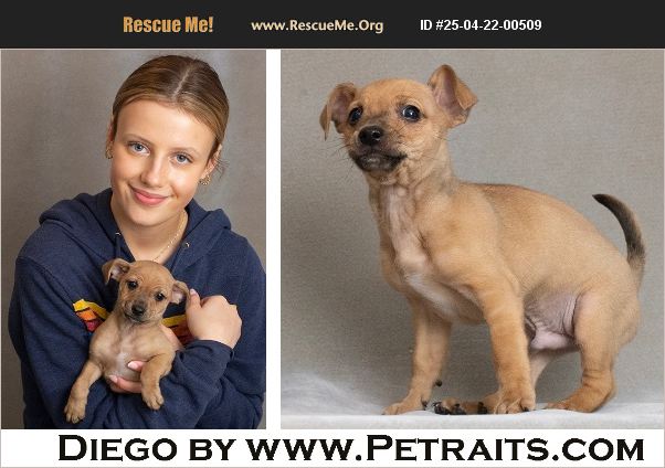 Diego is a four-pound, eight-week-old, male, fawn Chihuahua puppy looking for a loving guardian. Diego is joyously happy and loves everyone and everything. He's doing beautifully with his pee pad training, and will be working on her leash walking and housebreaking as soon as he gets his second vaccines on board tomorrow. He loves playing with dogs and people, treats, mealtime and being snuggled. He would love to be adopted by someone with the time and energy for training, exercise and a lot of love. Diego was born on February 19, 2025; he is fecal tested and dewormed. He received his first distemper vaccine and will be neutered and micro-chipped on Wednesday, April 23rd. His adoption fee of $500 benefits the rescued pets of Friends of Petraits Rescue. He comes complete with any puppy supplies you need to get you started. If you are interested in meeting and possibly adopting Diego, please fill in an adoption application at https://friendsofpetraits.com/dog-adoption-application/ and follow up by contacting [email protected] to make an appointment to meet him. He is being fostered in Chicago's Andersonville neighborhood.