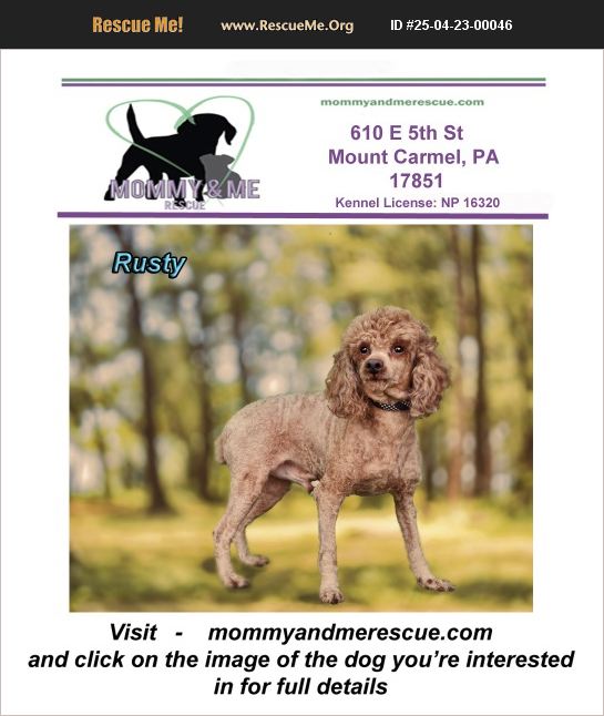 Please fill out an application here ) https://mommyandmerescue.com/adoption-application/ and give your vet clinic permission to speak with us. Spayed/Neutered, UTD on vaccines, Chipped Adoption fee 400.00 You must submit the application and be approved prior to meeting one of our dogs. If you have questions please EMAIL [email protected] or visit mommyandmerescue.com Kennel License: NP 16320 Rusty Male Mini Poodle Age: 10-12-20 Weight: 16 pounds Rusty is a retired breeder. Before he came to us he had little human contact and was never inside of a home. Rusty is learning all about life now and doing quite well. Rusty walks nicely on a leash and goes potty every time we take him out. He is doing so well with house-training and seldom has accidents in his kennel. Rusty is very shy but learning to trust. He loves other dogs and would like a quiet household.