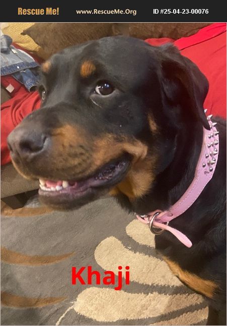Beautiful, sweet Rottie looking for a great home. Love toys and love to play. Very affectionate and great with kids. Looking for someone who can give her the love she deserves. Khaji is 1 1/2 years old , about 75 pounds, spayed and up to date on shots. Just really want a nice home for her.