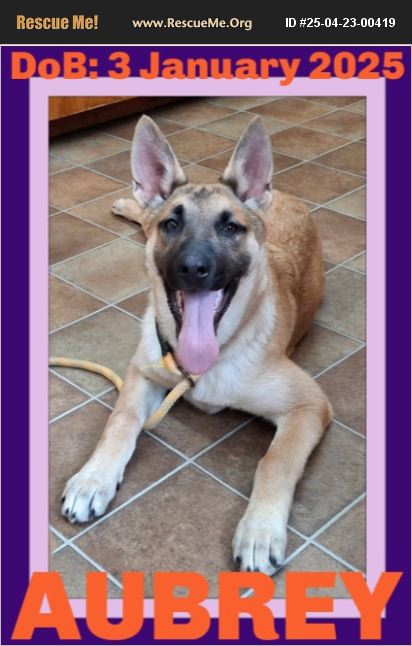 Aubrey was saved from a high kill shelter in Texas and arrived at Give a Dog a Home Rescue in Sebec, Maine on Saturday 29th March. We post our available dogs in states across the east coast and Canada to reach as many people as possible in hopes to find perfect homes and families. We do not transport dogs, families must come to the rescue in Sebec, Maine to meet and then hopefully take home. Aubrey is spayed, rabies, core vaccines, is on monthly preventatives, microchipped, and on 22 May weighed 42 pounds. She has an estimated date of birth of 3 January 2025. A family who adopted a sibling had a DNA test done and this came back 75% German Shepherd, 16% Supermut (Belgian Malinois, Dutch Shepherd, Malamute) and 14% American Pit Bull Terrier. Please be sure when considering adopting this beautiful girl you have the lifestyle to suit this breed mix. High energy and mental stimulation are very important factors. Aubrey is available for adoption for an adoption fee of $350, as noted she is located at the rescue in Sebec, Maine and families are required to complete and submit an adoption application and when approved schedule an appointment to come to the rescue to meet and hopefully take home this sweet girl. Applications are processed with 24 hours of them being received.