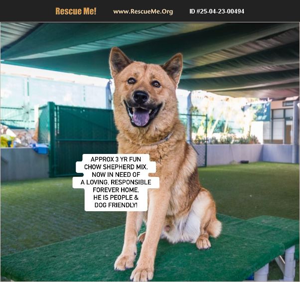 Courtesy Posting: PASADENA, CA (SO CAL)-PASADENA HUMANE SOCIETY- ID #A516948- APPROX 3 YR FUN CHOW SHEPHERD MIX, NOW IN NEED OF A LOVING, RESPONSIBLE FOREVER HOME, HE IS PEOPLE AND DOG FRIENDLY! Please help us find a good and dog savvy home for adorable Momo now available to adopt. The shelter says, 'Momo is a 3-year-old, tall and dashing adventurer who's ready to be your loyal sidekick! He's happiest in big backyards, where he can roam freely and survey his kingdom from a deck. With a love for stairs, Momo tackles them like a pro, despite having a bit of trouble hopping into cars. But don't worry-he's all about the fun, whether it's cow ears (his favorite treat), bully sticks, or a good chase after squirrels. Momo's got personality: he's sweet, affectionate, and happiest when he's the only pet in the spotlight (sorry, other dogs and chickens!). A pro snuggler, he's also your best buddy when it comes to enjoying cozy moments at home. Just watch out-he's tall enough to leave those charming muddy pawprints on your kitchen counter, so removing the stovetop knobs might be a good idea! This happy-go-lucky guy isn't just all fun-he's smart and responsive, mastering commands like 'sit' for a tasty mozzarella treat. Whether lounging by your side or exploring the outdoors, Momo will bring joy, loyalty, and a touch of goofy charm into your life. Ready for an adventurous, affectionate companion? Momo's your guy! I'm available for a 10 day adoption trial ' They can provide further notes to adopters or rescues. Potential adopters are asked to email: [email protected] or to call 626-792-7151 x971. Rescues can reach out to: [email protected] or 626-792-7151 x982. If you need further help or are interested to foster for a rescue, please contact [email protected] or Southern California Chow Chow Rescue Network who is assisting with his placement. We will be posting more pictures and videos of this cutie on facebook at: https://www.facebook.com/783968124/posts/10166988610398125/?mibextid=wwXIfr Note: to view contents of links you will need to copy and paste each one separately into your browser.
