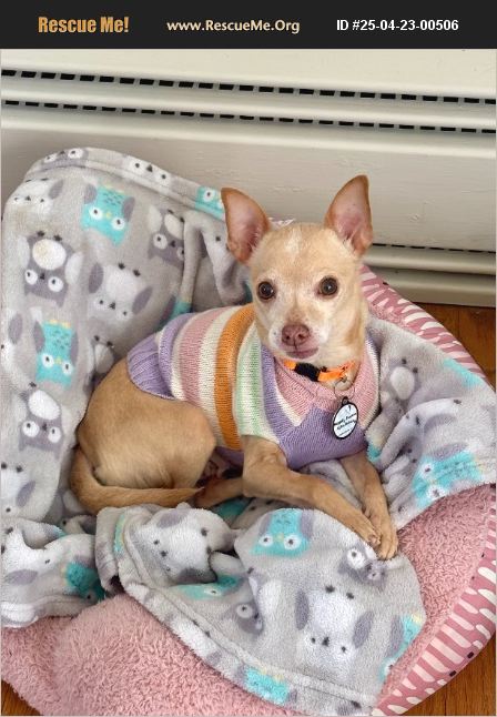 Say hello to Sally! Sally is a sweet, pint-sized 9-year-old, 7lb. chihuahua with a heart full of love and a talent for lounging like a pro. She came to Connecticut all the way from California and is the perfect little companion for anyone looking for a mellow, cuddly sidekick. This little cutie is well socialized and gets along beautifully with other dogs, though she's just as happy soaking up all the attention as your one and only. Sally's favorite hobbies? Burrowing into soft blankets, napping the day away, and standing on her hind legs to politely ask for treats (yes, she knows her name and isn't afraid to use it when snacks are involved). She is house trained, walks nicely on a leash, and doesn't mind being scooped up for a carry-around adventure-she's light as a feather and loves being close to her people. Sally would love a calm, cozy home where she can spend her days by your side-whether you're lounging on the couch or heading out for a stroll. She loves other dogs but will bark and occasionally growl at cats. She's ready to be someone's little shadow and constant companion. Her adoption fee is $400 and she is vaccinated, microchipped, heartworm negative, and spayed. She also recently had dental work so she's now toothless, talk about adorable! Sally also qualifies for our Senior-to-Senior discount so if you're 60 years or older, you can adopt her for just $300. If you are interested in this cutie, please complete the application at https://form.jotform.com/200883908893166. For questions, email [email protected].