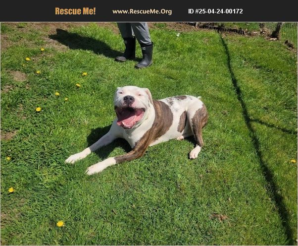 REX Pit Bull Terrier mix Male, neutered Around 2-3 years old and 77 pounds Rex is an oversized baby who loves to give love and kisses. He came in with another dog, so he doesn't seem to mind being around dogs, humans, and kids. Just needs some loving. He is updated on vaccines, will be tested, and is ready to find his forever home. If you're able to take on a big, goofy, gentle giant who loves to give kisses, please come see Rex. **Interested in adopting?** To take the first step towards bringing this lovely dog into your home, please complete our online application at https://www.guernseycountydogshelter.com/ or click the round purple button to access it. Keep in mind that submitting an application does not guarantee adoption approval. Thank you for considering dogs from the Guernsey County Dog Warden Dept., located in Cambridge, OH. Please note that we are not a no-kill shelter, and we must make tough decisions regarding animals who are ill or aggressive. **Adoption Fees:** - $165 for dogs under 5 years old - $100 for dogs over 5 years old - $200 for cell dogs Your adoption fee covers vaccinations (DHPP, Bordetella), microchipping, heartworm and Lyme testing, rabies vaccination, spay/neuter, and a dog license. All dogs must be spayed or neutered before leaving the shelter; if this hasn't been done, we'll schedule an appointment for you. **Payment:** We accept cash only-no checks, debit, or credit cards please. For more information, feel free to reach out to us during office hours, Tuesday to Saturday from 9 AM to 5 PM. Our public visitation hours are Tuesday to Saturday from 11 AM to 4 PM. If you're coming from out of town, give us a call at 740-432-2219. Thank you for considering one of our dogs and for helping us find them a forever home!
