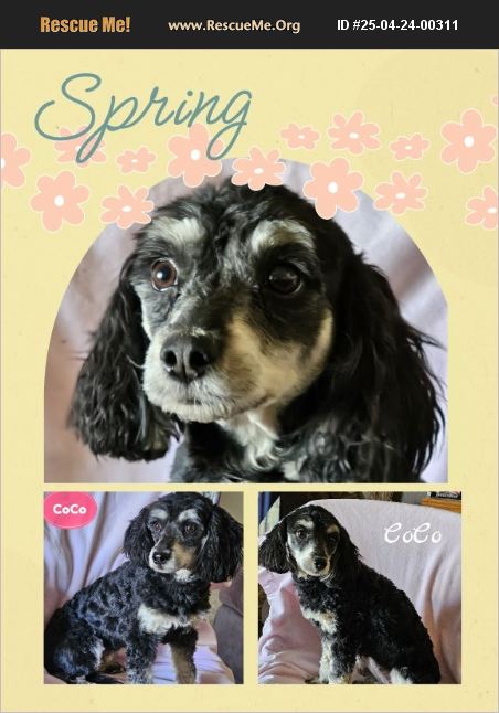 Freshley groomed and ready for her new forever home! CoCo is a beautiful black and tan Malti-Poo. She is house and crate trained and walks on a leash. CoCo loves to play and would do best in a home with another dog. CoCo weighs 13 pounds and should be at Her full adult weight and size. Her full sibling, Cookie is also listed. Thank you for considering a rescue