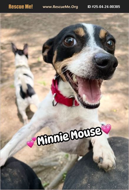 Sweet Minnie Mouse is settling in nicely and is healing well since her spay surgery. She is happy to join daycare and meet new friends. She loves a LOT of human attention and will follow you through every room of the house. She will certainly bring joy to any household. Cat and dog friendly, seems to be potty trained, active, up to date on immunizations and heartworm prevention, we think she would also do well with children because of her sweet nature. Be sure to check out the Disney logo on her side.