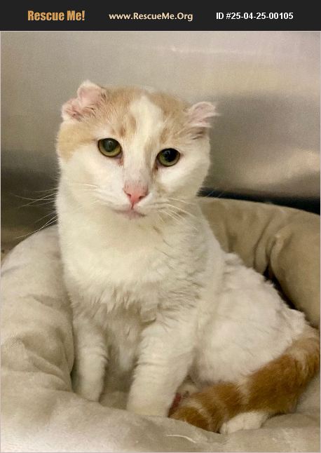 Approximately 6 year old, neutered male, white with buff tabby Domestic Shorthair. This squishy faced little toasted marshmallow of a feline looks like a Scottish Fold, but his ears are actually just crinkled and scarred from chronic ear infections. That makes him a Scottish Fauxl'd He also came to us significantly matted so he has a very funny haircut but boy is he more comfortable, and if you ask us, all the more lovable! Garfunkel is a quiet guy who mostly keeps to himself in a group setting, and is docile and loving one-on-one. He would love a quiet home that allows him to come out of his shell. He came to us along with Simon and Gwendolyn and does enjoy their company, but can also go to a home all his own. He's great with other cats and is desensitized to dogs, although hasn't lived in direct contact with them to our knowledge. Come meet Garfunkel today!