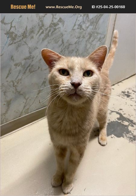 THIS BOY IS SO AFFECTIONATE! Simon! Approx 10 year old (looks and acts like a kitten!), neutered male, buff tabby Domestic Shorthair. The description on his intake paperwork was 'champagne Tiger', and when you meet Simon you wouldn't disagree! Nobody can escape his bewitching charm! He gives a croaky meow and squints his eyes at you when you say his name. If you're sitting, he's in your lap; if you're standing, he's jumping to the highest point to get your attention. Simon is as affectionate as they come so come on down to say hi and make this handsome devil's day!