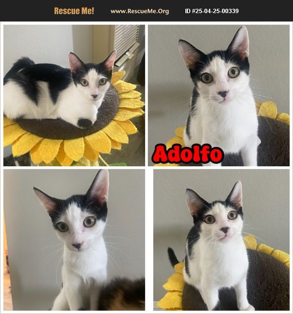 I'm Adolfo! I'm a 7-month-old short haired playful boy who enjoys cat trees and sleeping by the window.�%A0�%A0I'm hoping to find my forever home soon. A family of my own where I can grow and enjoy my life would be nice!�%A0�%A0I look forward in meeting you. Adolfo(3