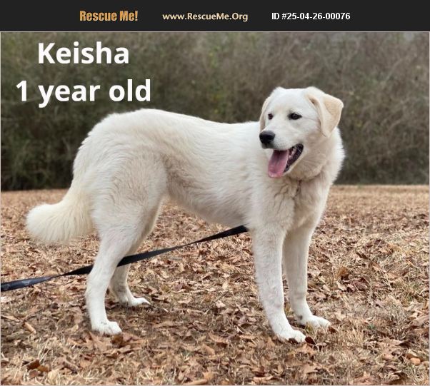 Keisha is a Beautiful 1 year old baby that looks like a Great Pyrenees/ Golden Retriever/ Lab Mix. She currently weighs about 75 lb. She is an energetic leader, very smart, playful and high energy! Keisha has the best personality and no matter how bad your day is, she is the perfect cure! She was confiscated by animal control with her mother and siblings from horrible conditions. They have been at the rescue for a little while waiting till they were able to leave. In that time she has learned house manners and crating as well as perfecting many other skills. She has been spayed, vaccinated, microchipped, dewormed and is heart worm negative. Her adoption fee $350.