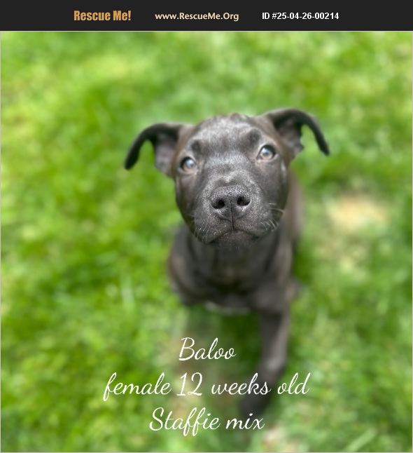 Name: Baloo Gender: Female Breed: unknown potential Staffie/Lab She's a very curious little girl who loves tug of war and playing with the little kids Good with dogs and kids. Working on house training and crate training.